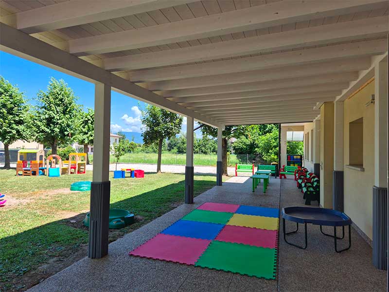 giochi a norma, ampio porticato, tappettone anti-trauma , spazio lattanti